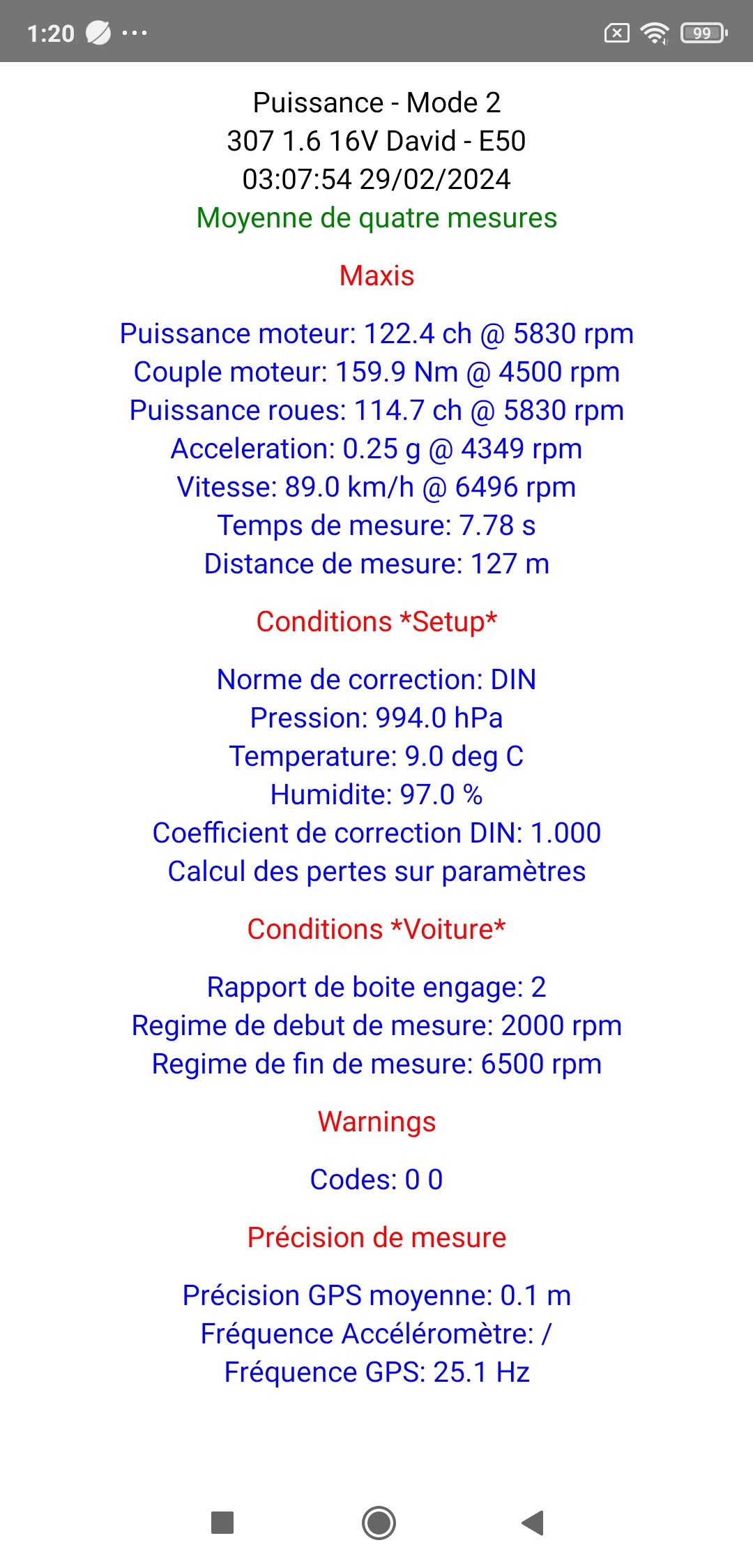 Note 2: Facheuse conséquence de ce sous-dosage, les performances de ma 307 ont légèrement diminué avec des avances à l'allumage dynamiques baissées par le calculateur (vérifié en logs), elle ne délivre donc plus "que" 123 ch en ce moment au lieu des 125 régulièrement vérifiés avant (voir bilans des séances du 04112022 et 16102023...), re-pfff...