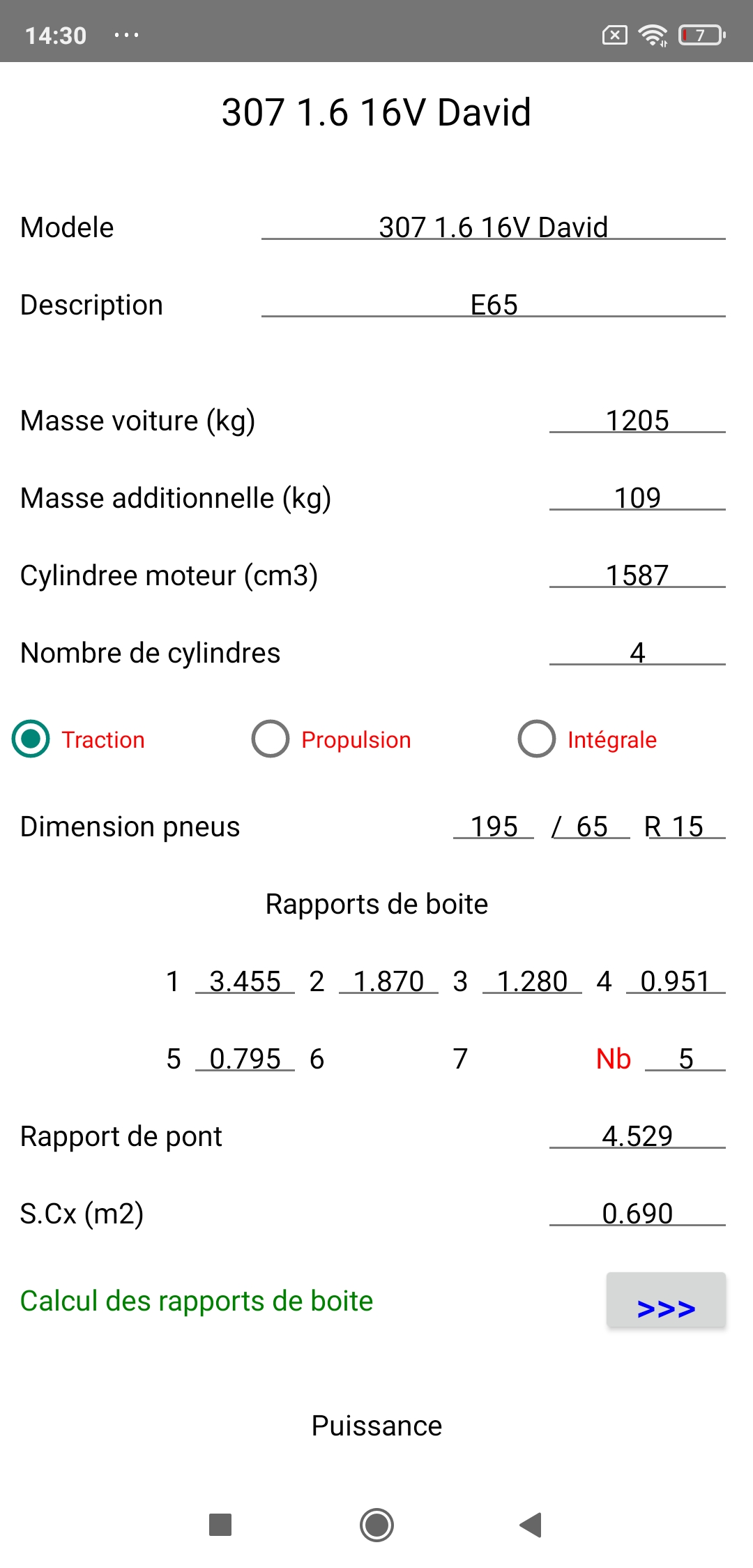 - Use of the parameters of the Car sheet and no longer those of the Results sheet which must imperatively be reserved for the re-calculation of power results on parameters