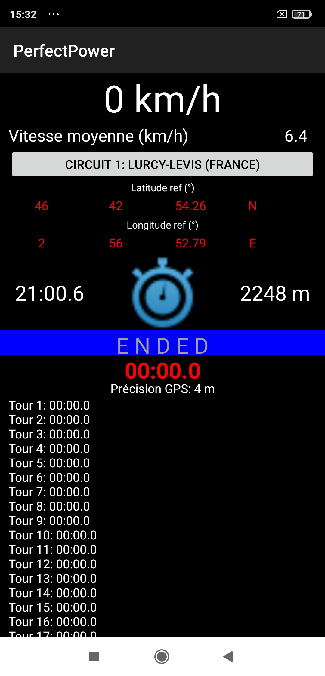 5 track laps on the outside lane in fast walking controlled by PerfectPower at 6.4 km/h (4.0 mph)!