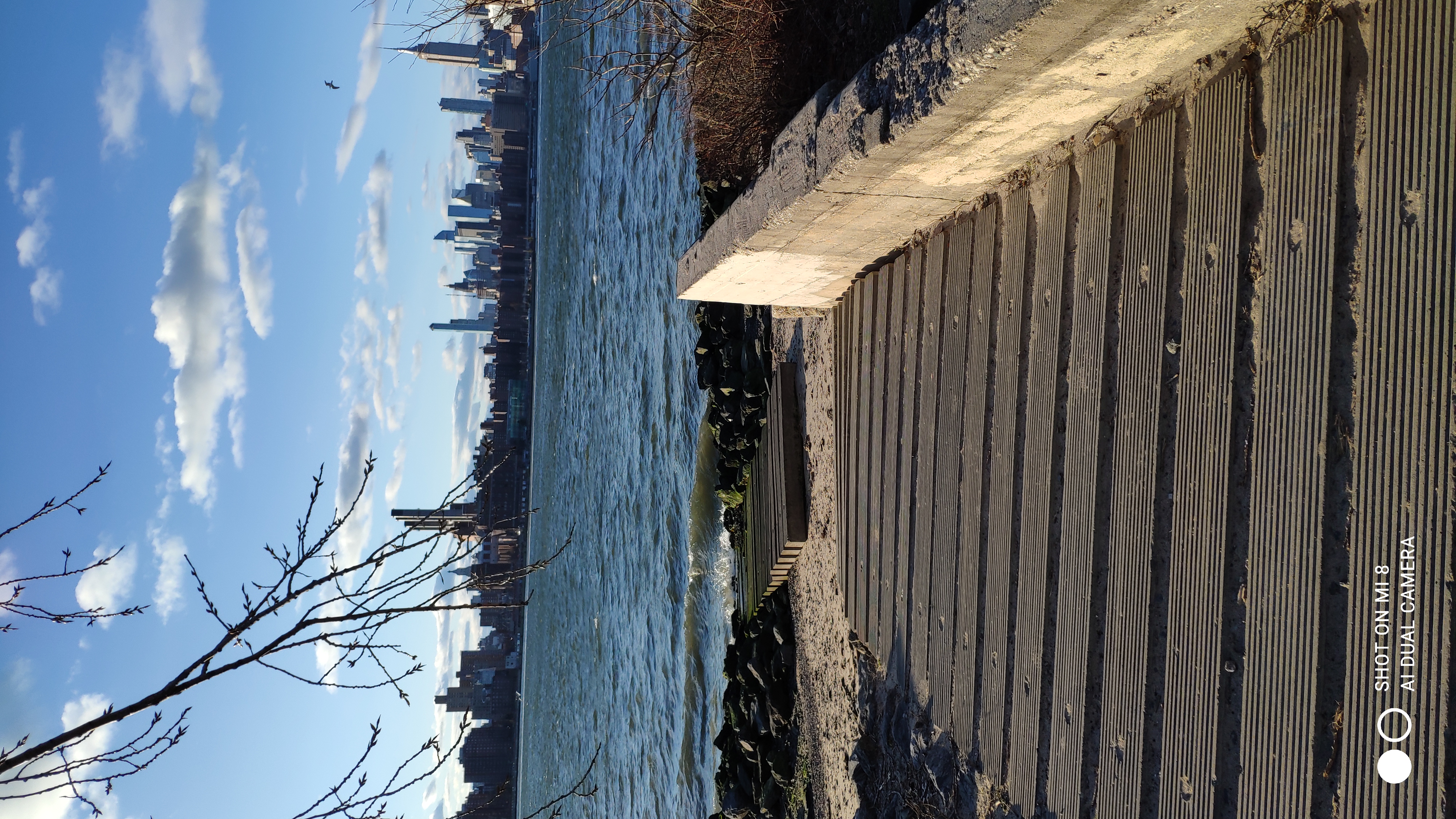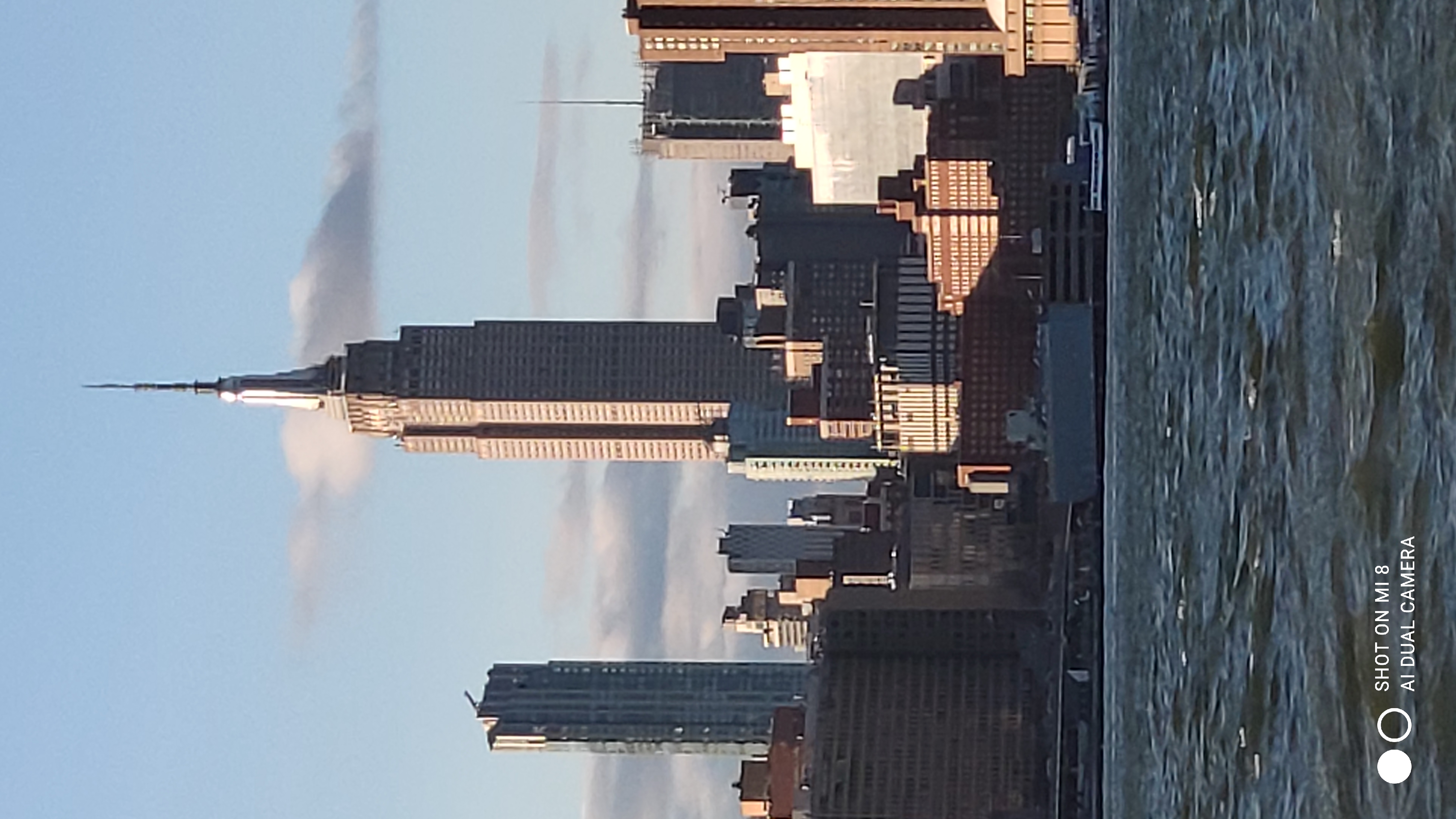 The East River which separates us from Manhattan, and opposite us the legendary Empire State Building...