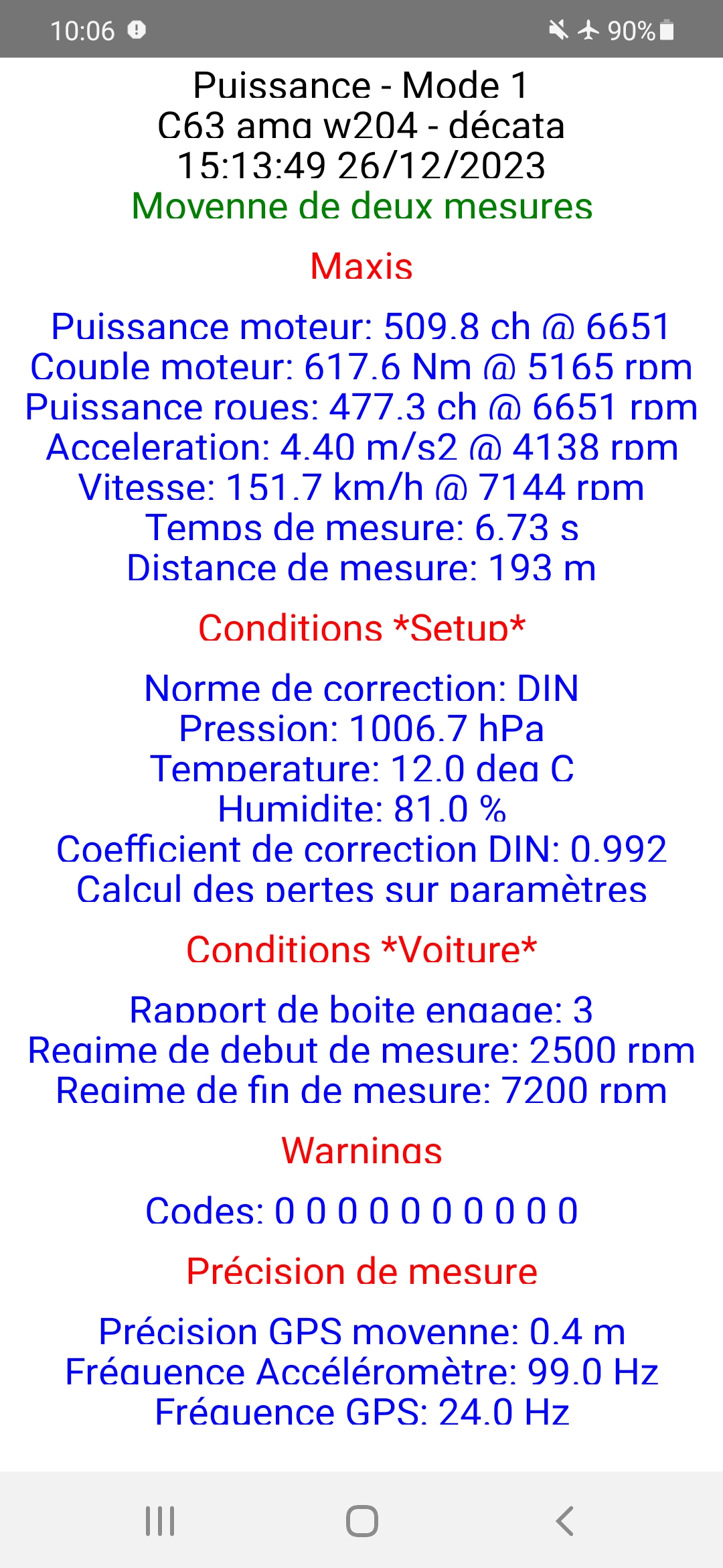 Note: Yoann est à la fois le chef-banc, le gérant de MCR Performance Normandie, et le proprétaire de cette C63 AMG, mais c'est aussi un ami de longue date et défenseur de PerfectPower dès ses débuts, ET pour preuve ce comparatif qu'il a tenu à réaliser de lui-même dès la sortie de PerfectPower iOS 6.0 et dont il m'a aussitôt envoyé les résultats que j'ai ensuite publiés sur le site dans la foulée! Un immense merci à lui pour ce comparatif formidablement intéressant!