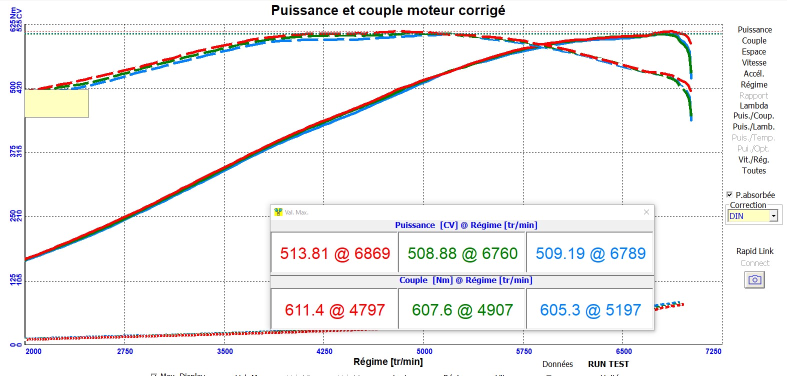 Ecart de Pmax = 3,6 ch soit 0,7% (!)