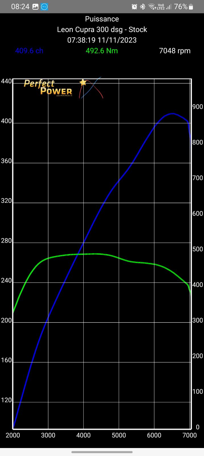 Examinons en effet le cas de cette Seat Léon survitaminée: est-il plus réaliste de dire qu'elle sort 410 ch et 493 Nm en se basant sur de mesures réalisées sur route (son environnement naturel pour rappel!) en 4ème, ou 405 ch et 520 Nm en se basant sur des mesures réalisées sur banc statique avec un taux d'accélération plus comparable à celui de mesures réalisées en 5ème sur route mais avec un refroidissement moteur & admission & échangeur plus comparable lui à celui de mesures réalisées en... 2ème sur route et en prime une chauffe supérieure de ces trois éléments à cause d'une durée de mesure accrue, deux éléments pénalisant légèrement la Pmax? La réponse est évidente!