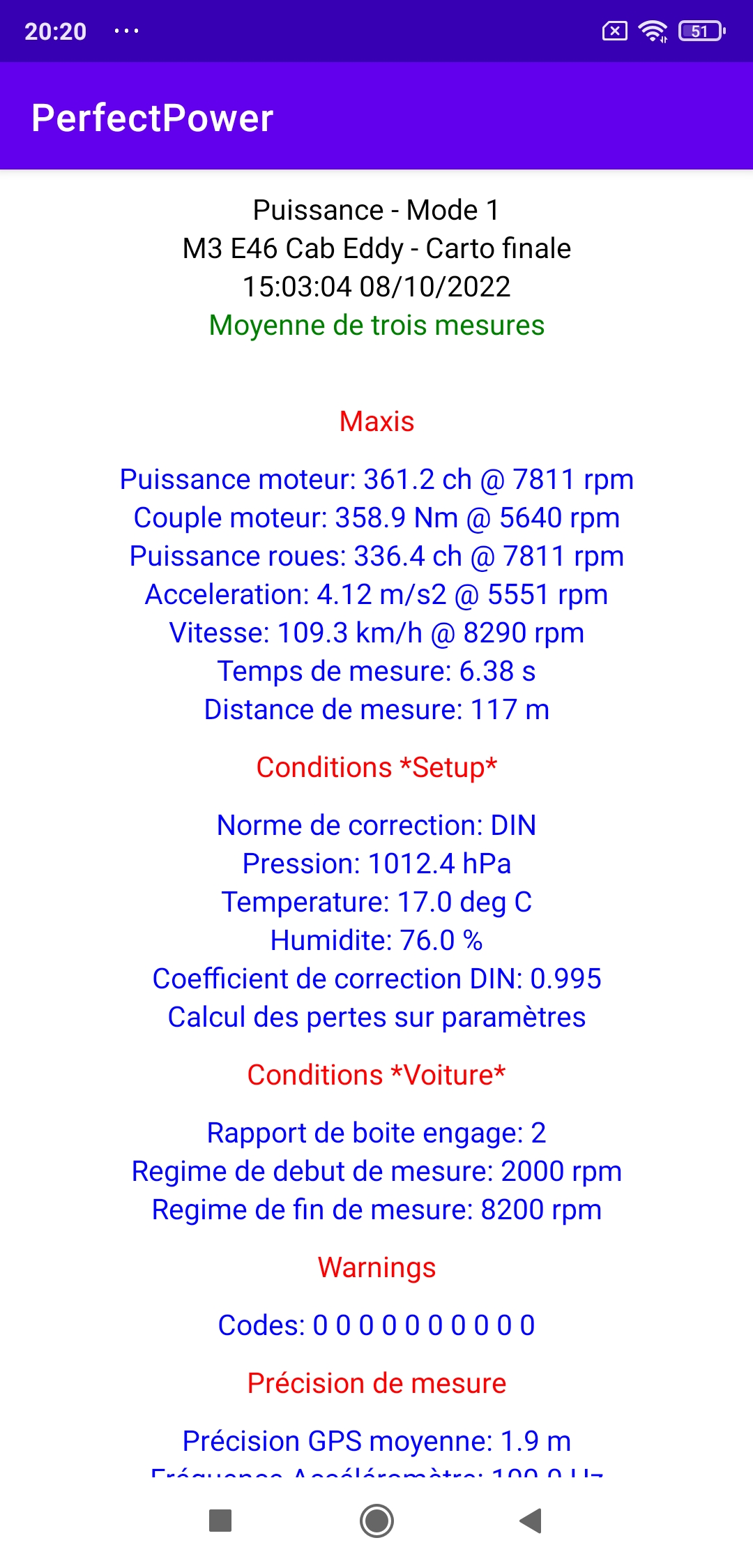 PerfectPower: Version Androïd 6.1.6 (new version) + RaceBox Mini (25 Hz)