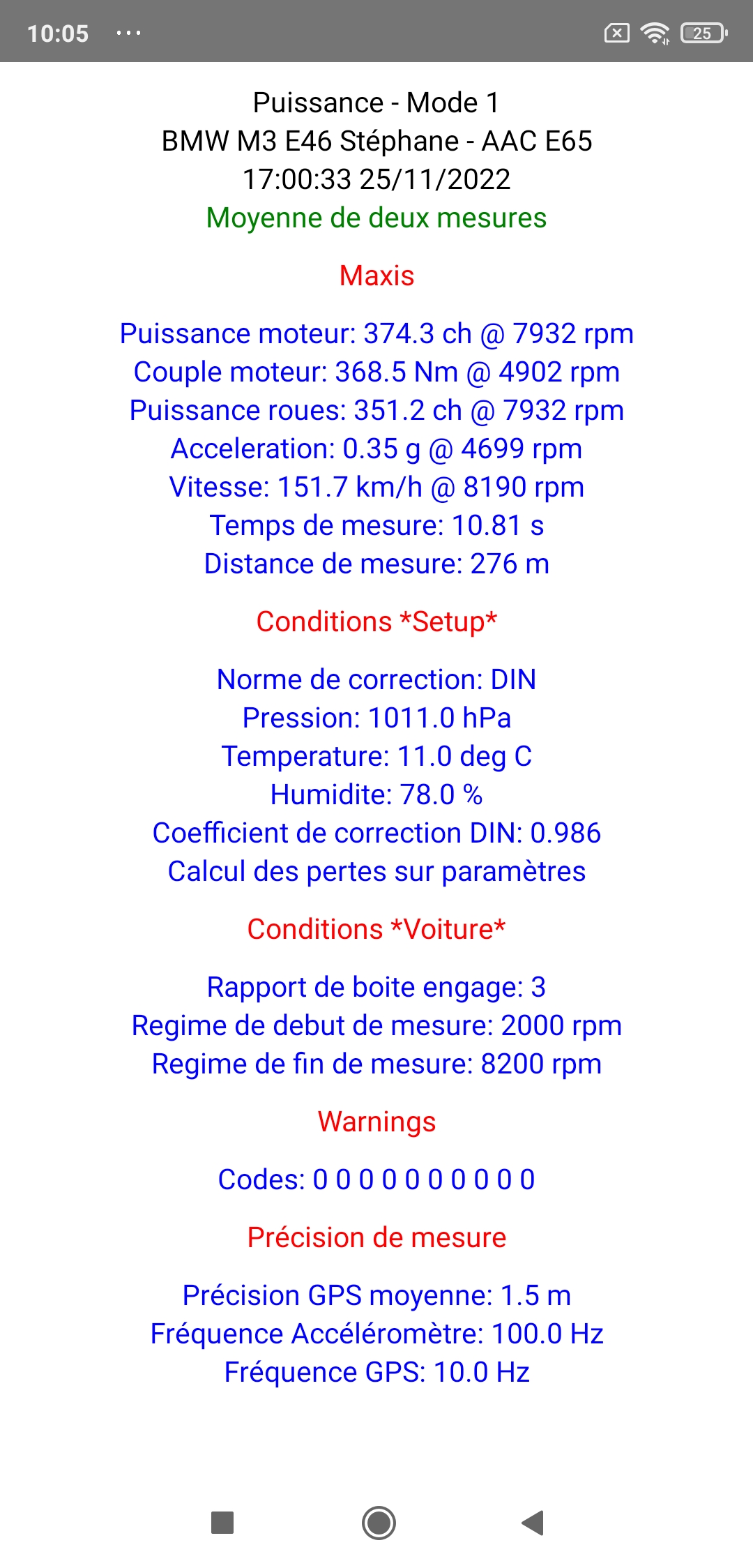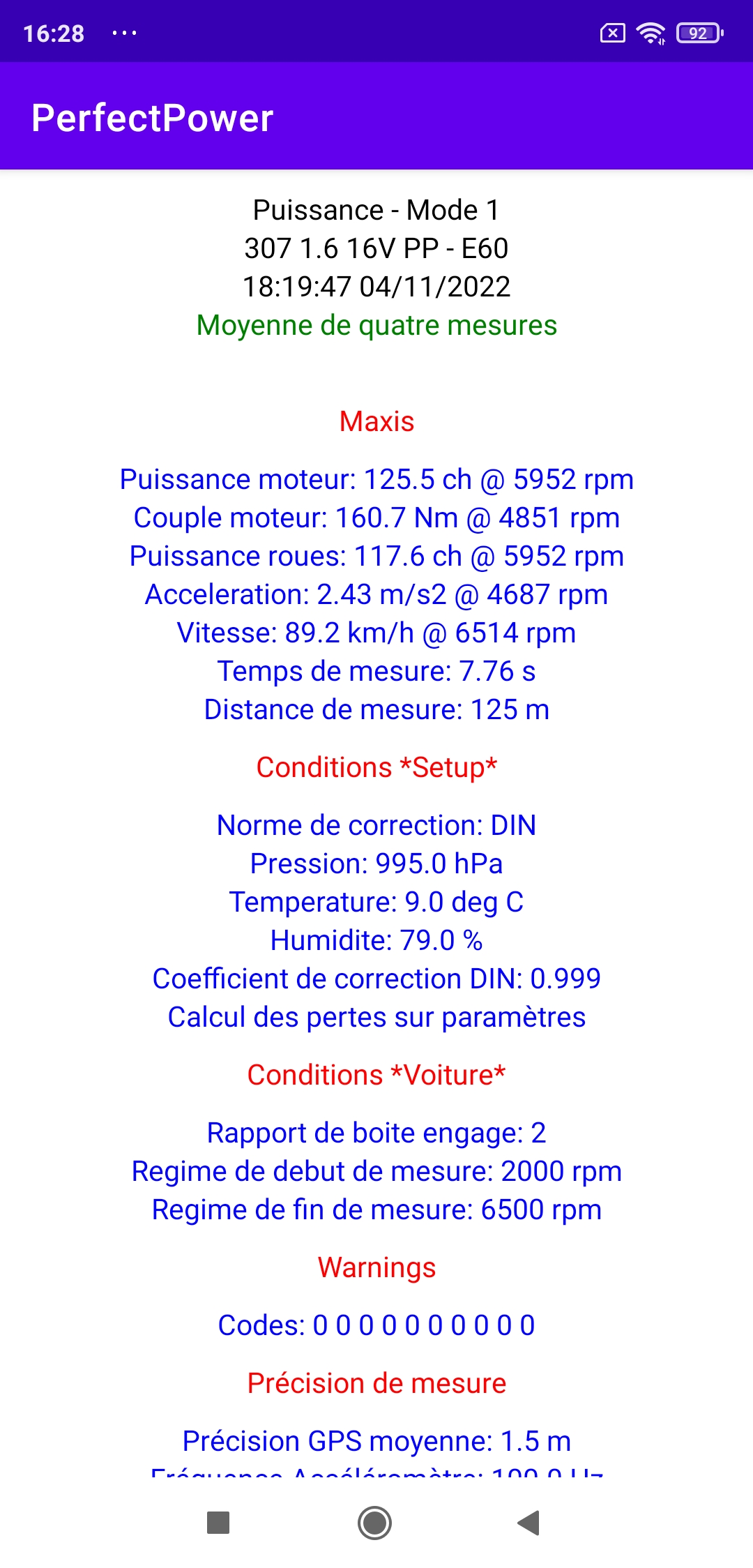 PerfectPower: Version Androïd 6.1.4 (new version) + RaceBox Mini (25 Hz)