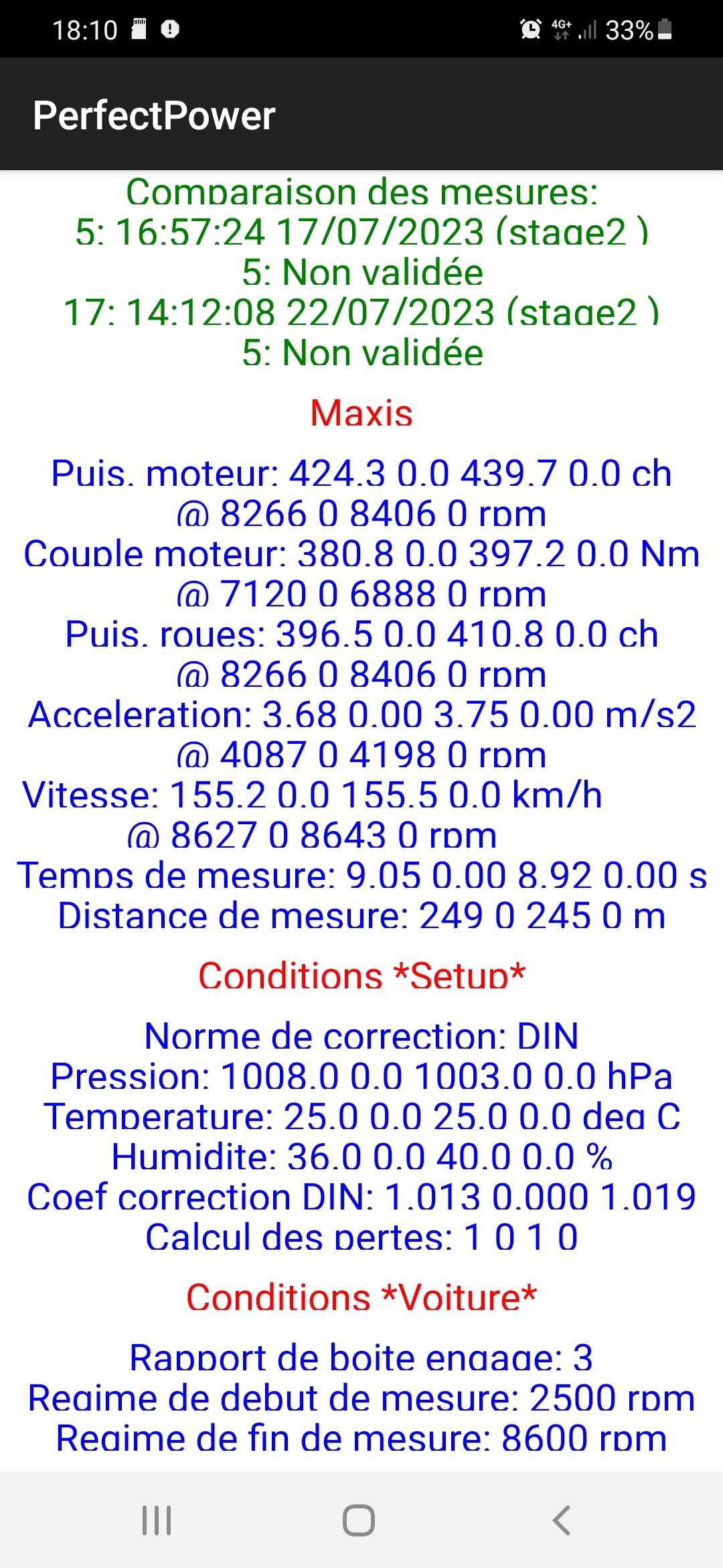 Hardware: Samsung Galaxy S23 (new Olivier's phone) + RaceBox Mini 25 Hz driven by PerfectPower