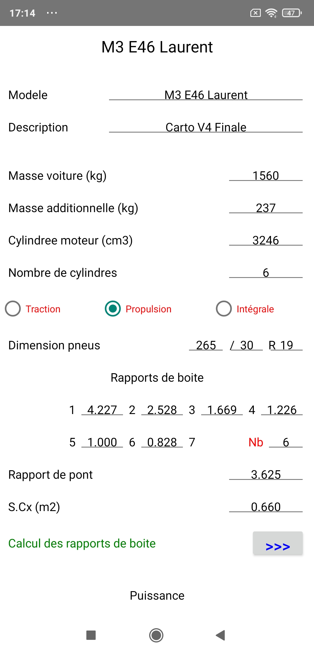 Note 2: Cette masse pour une BMW M3 E46 presque 100% stock est parfaitement cohérente puisque dans la gamme des masses relevées par les revues automobiles (qui pèsent les voitures avec le plein de carburant comme PerfectPower), qui vont de 1560 à 1590 kg après vérification.