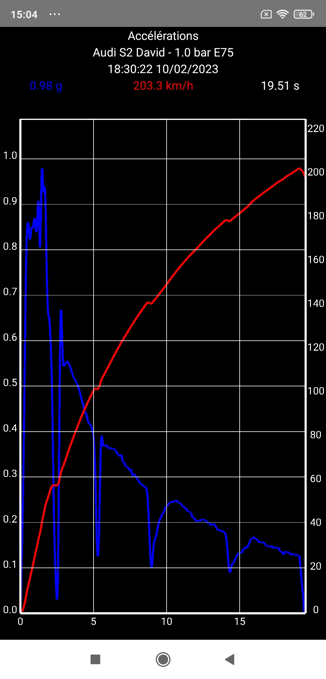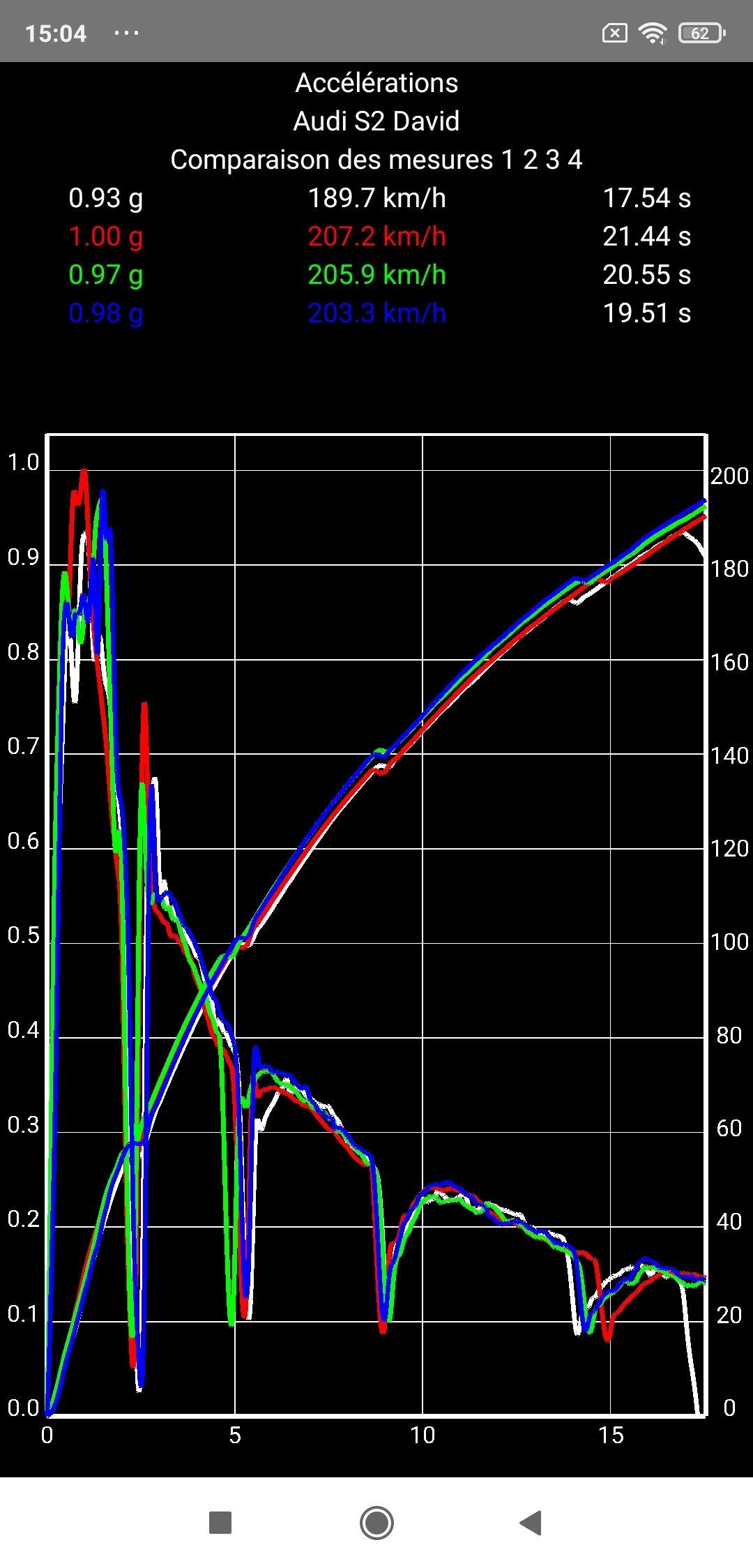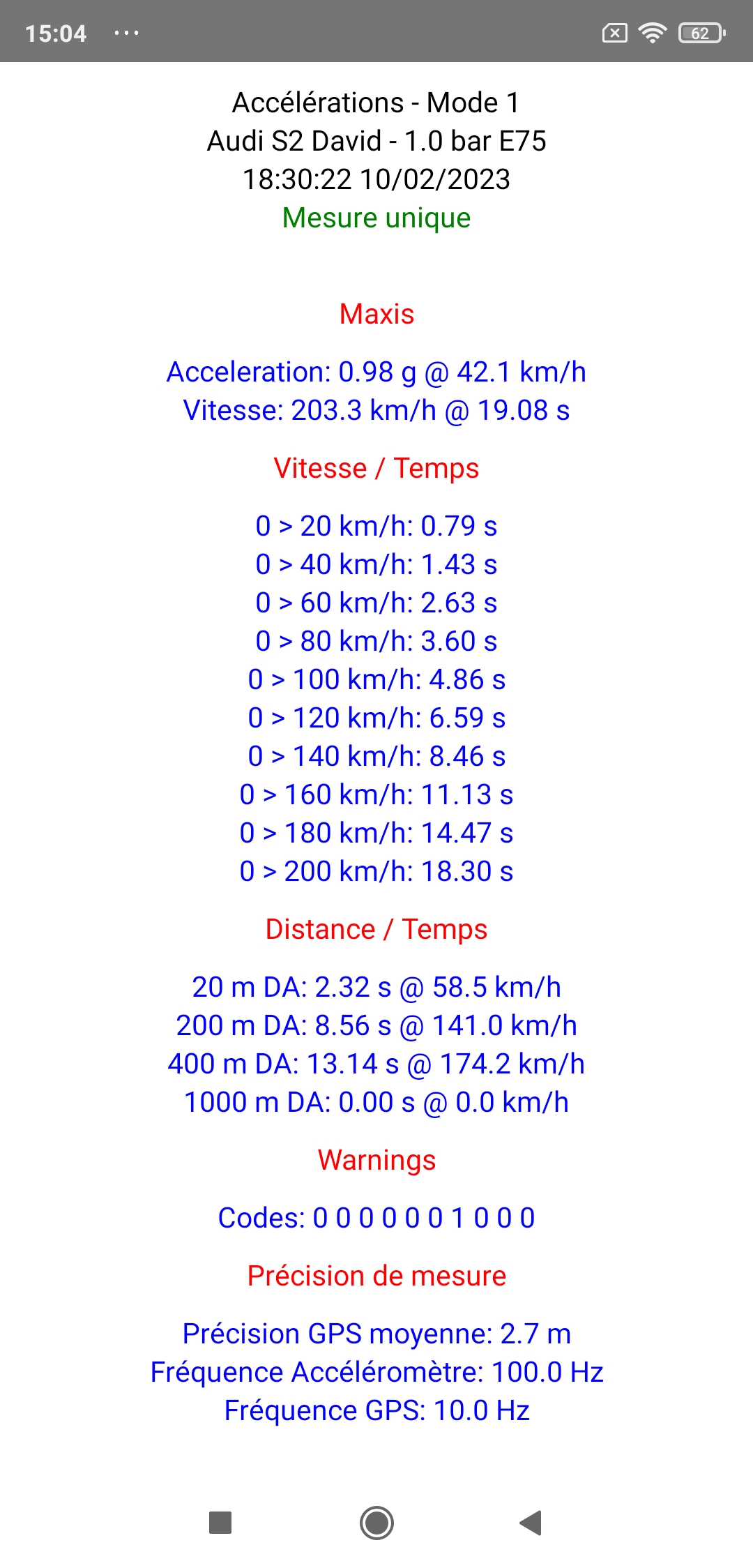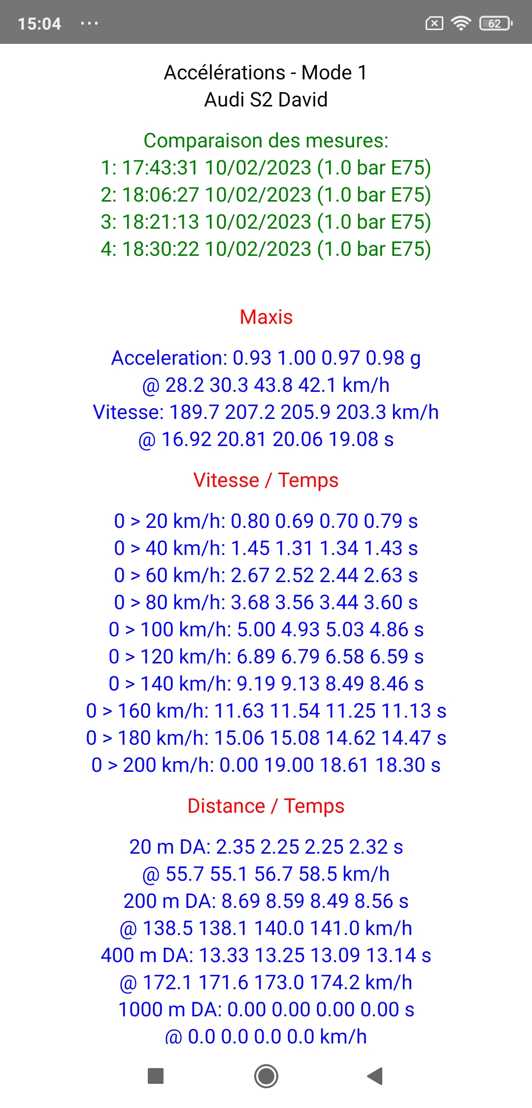 Note 5: Pour la 4ème et dernière mesure que je retiens en mesure de référence, j'ai réalisé un comparatif extrêmement intéressant avec la RaceBox Mini que PerfectPower pilote depuis sa version 6.1 du Sa 15042023, dont vous trouverez le bilan à ce LIEN.